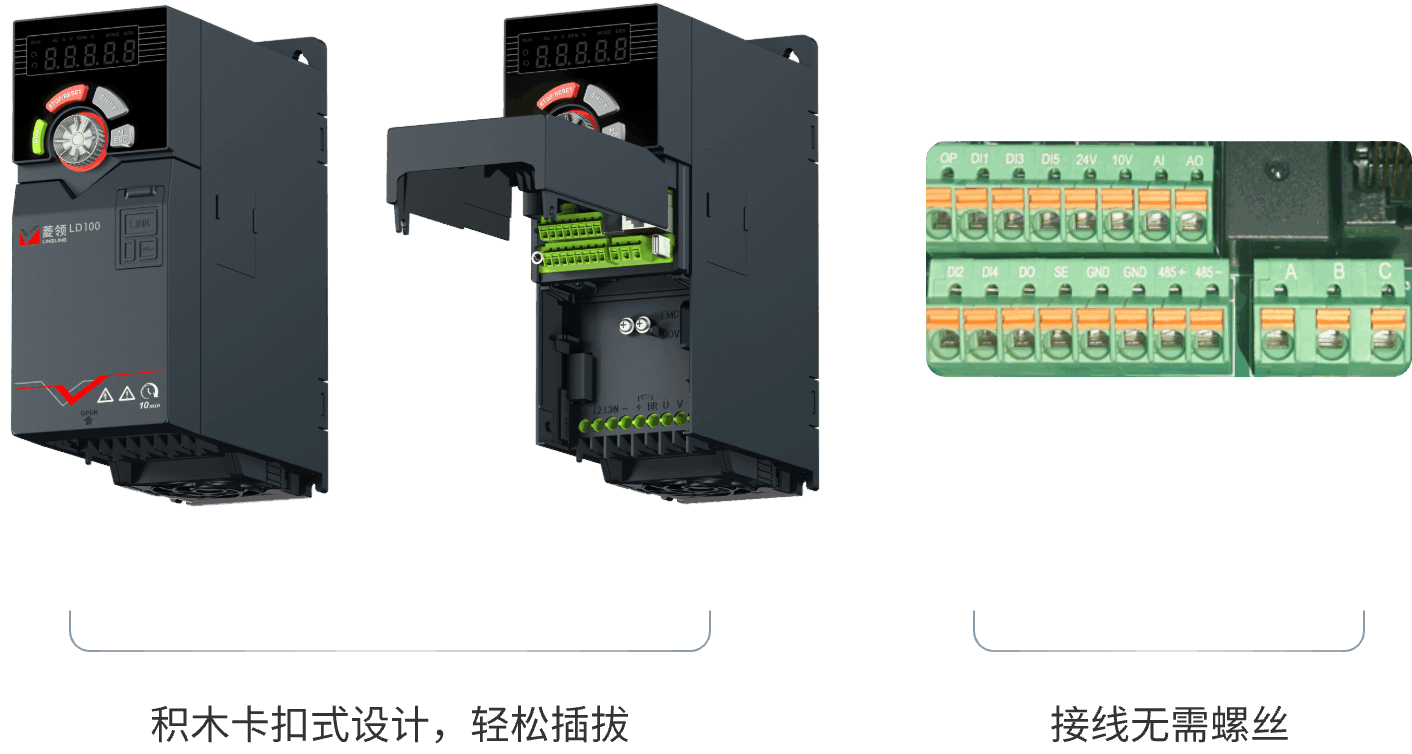 前盖板卡扣快装,控制端子免螺丝夹持接线;